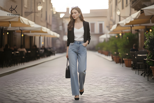 1. Vì sao jeans ống rộng dễ “nuốt” dáng?