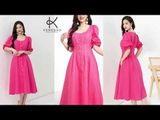 K303 Đầm LINEN cổ tròn, cài khuy dọc thân, tay lỡ