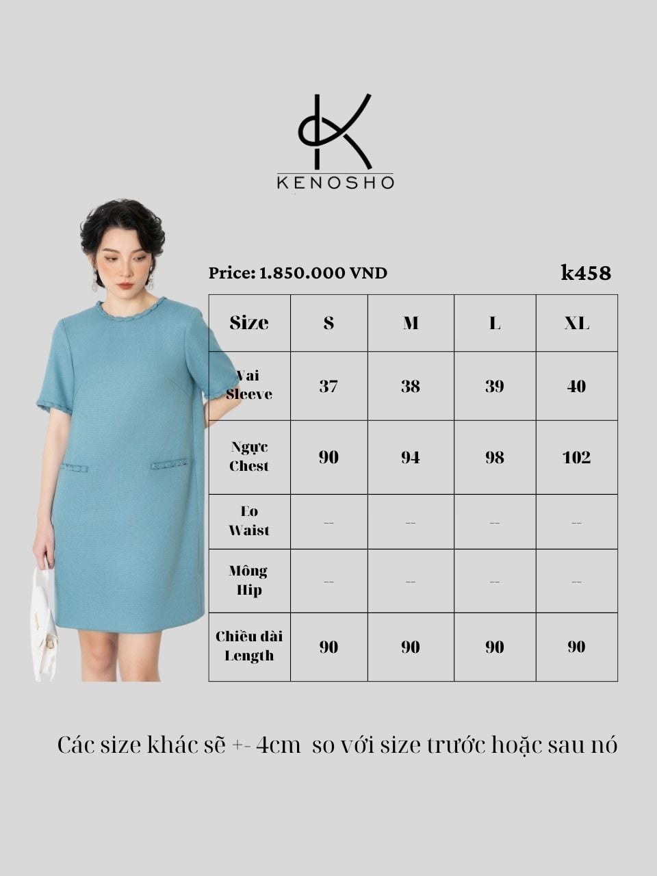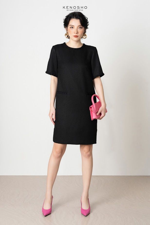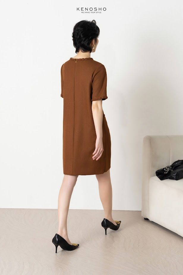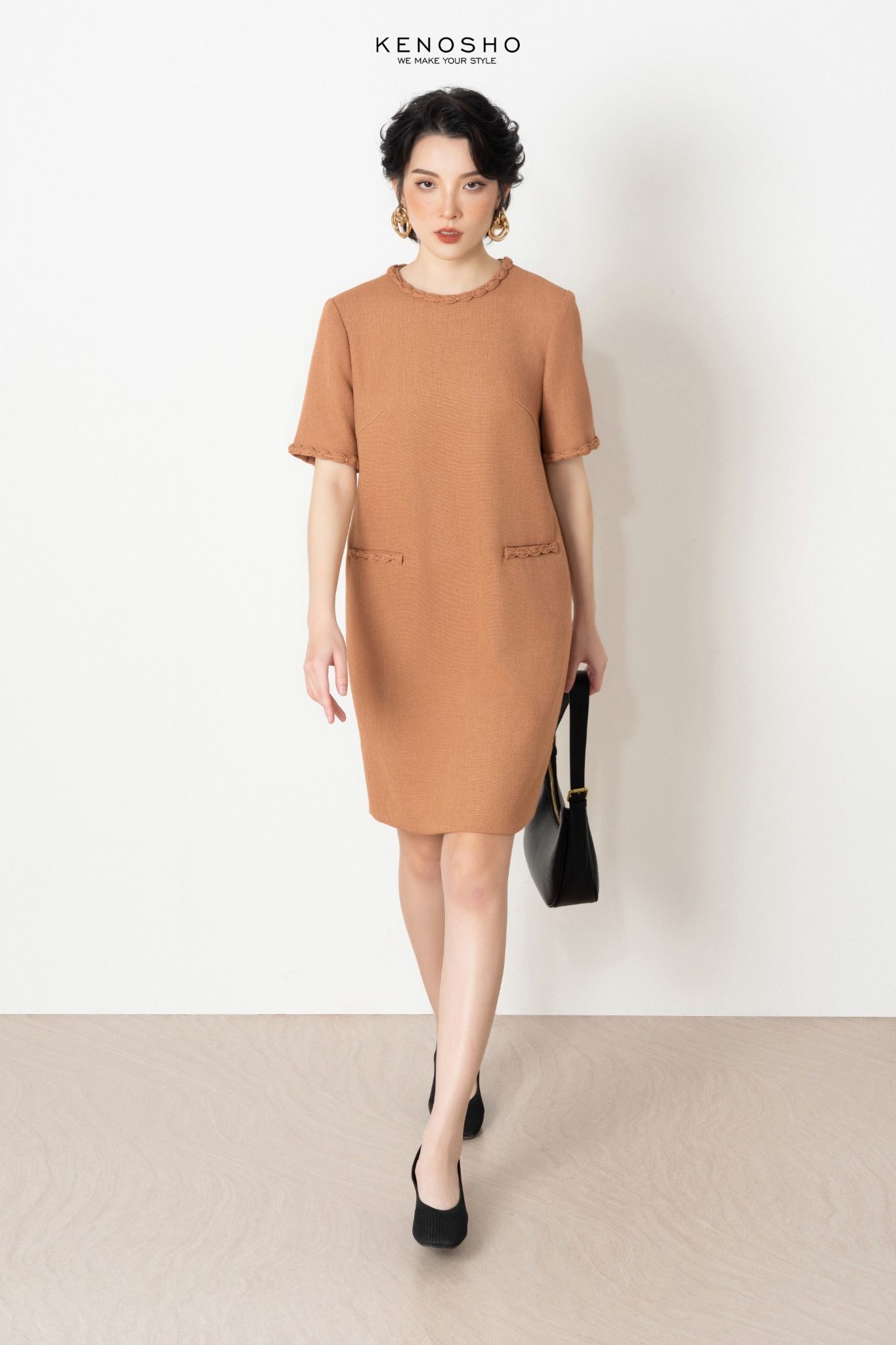 K458 - Đầm suông vải bố dáng ngắn đính chi tiết khâu tay