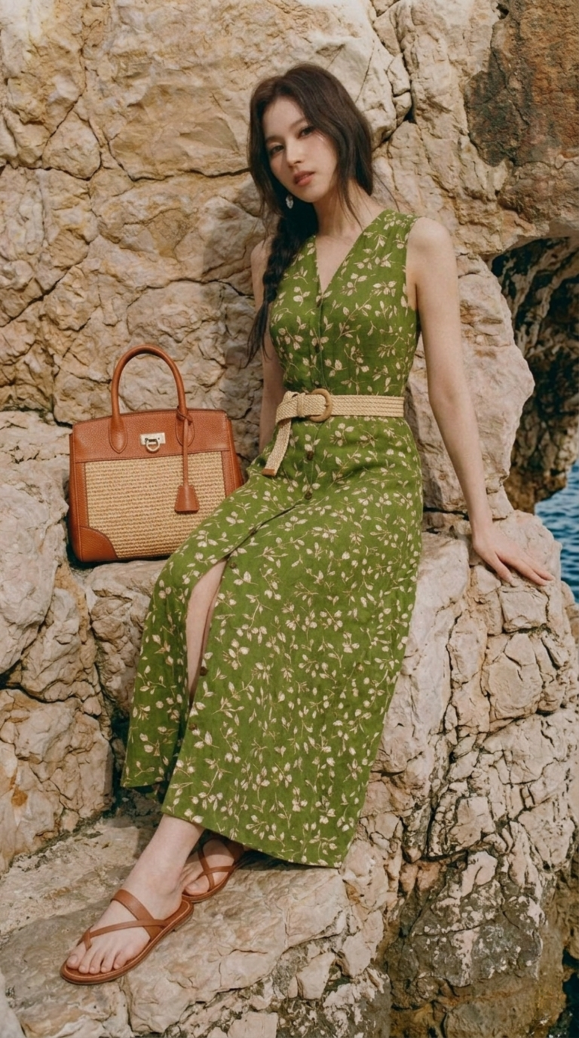 K490 - Đầm sát nách linen cổ tim xẻ trước - NEW ARRIVALS