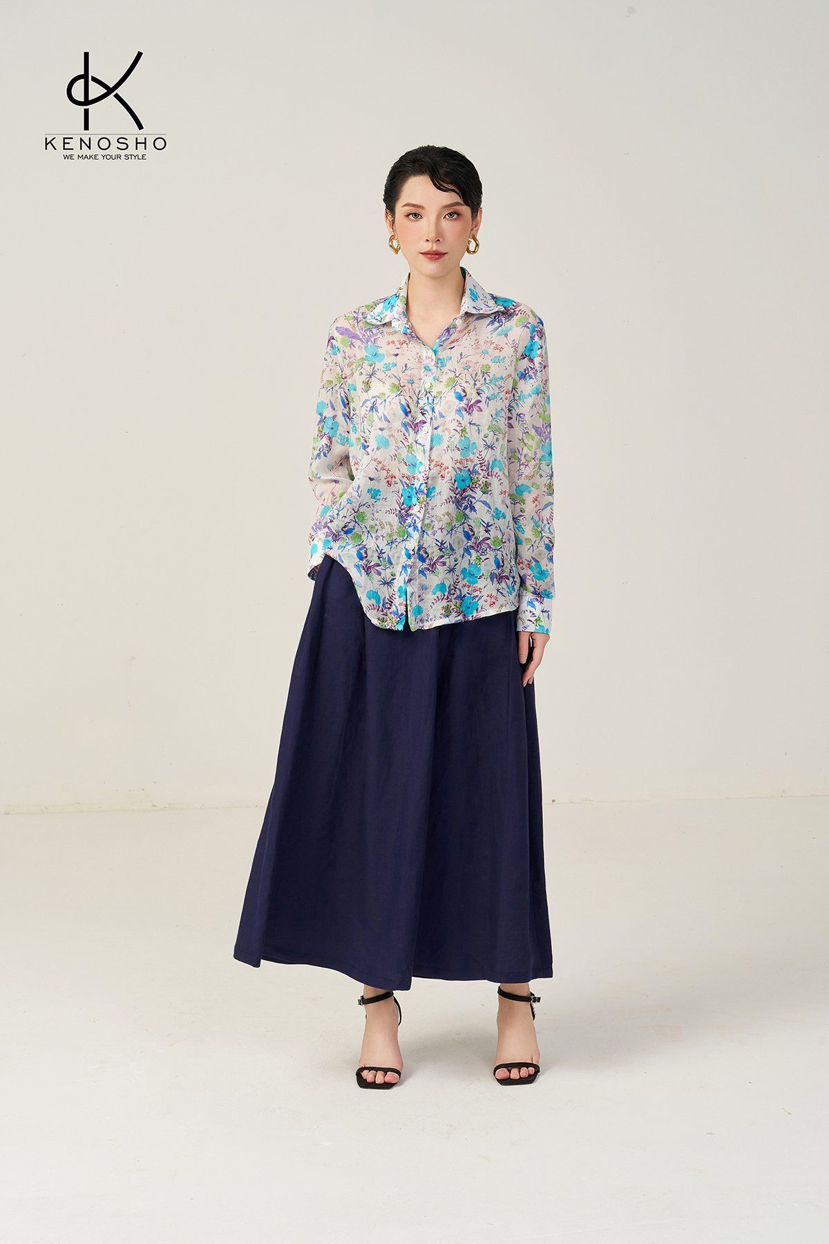 Chiếc áo sơ mi hoa xanh với thiết kế basic đơn giản nhưng không kém phần tinh tế này dễ dàng kết hợp với nhiều món đồ trong tủ của bạn. Bạn có thể phối nó với quần jeans cho một vẻ ngoài năng động, hay chân váy midi để tạo nên một set đồ nữ tính, thanh lịch. Áo cũng có thể mặc cùng quần âu hoặc quần short, giúp bạn linh hoạt trong phong cách, từ những ngày đi làm chuyên nghiệp đến các buổi dạo phố thư giãn cuối tuần.