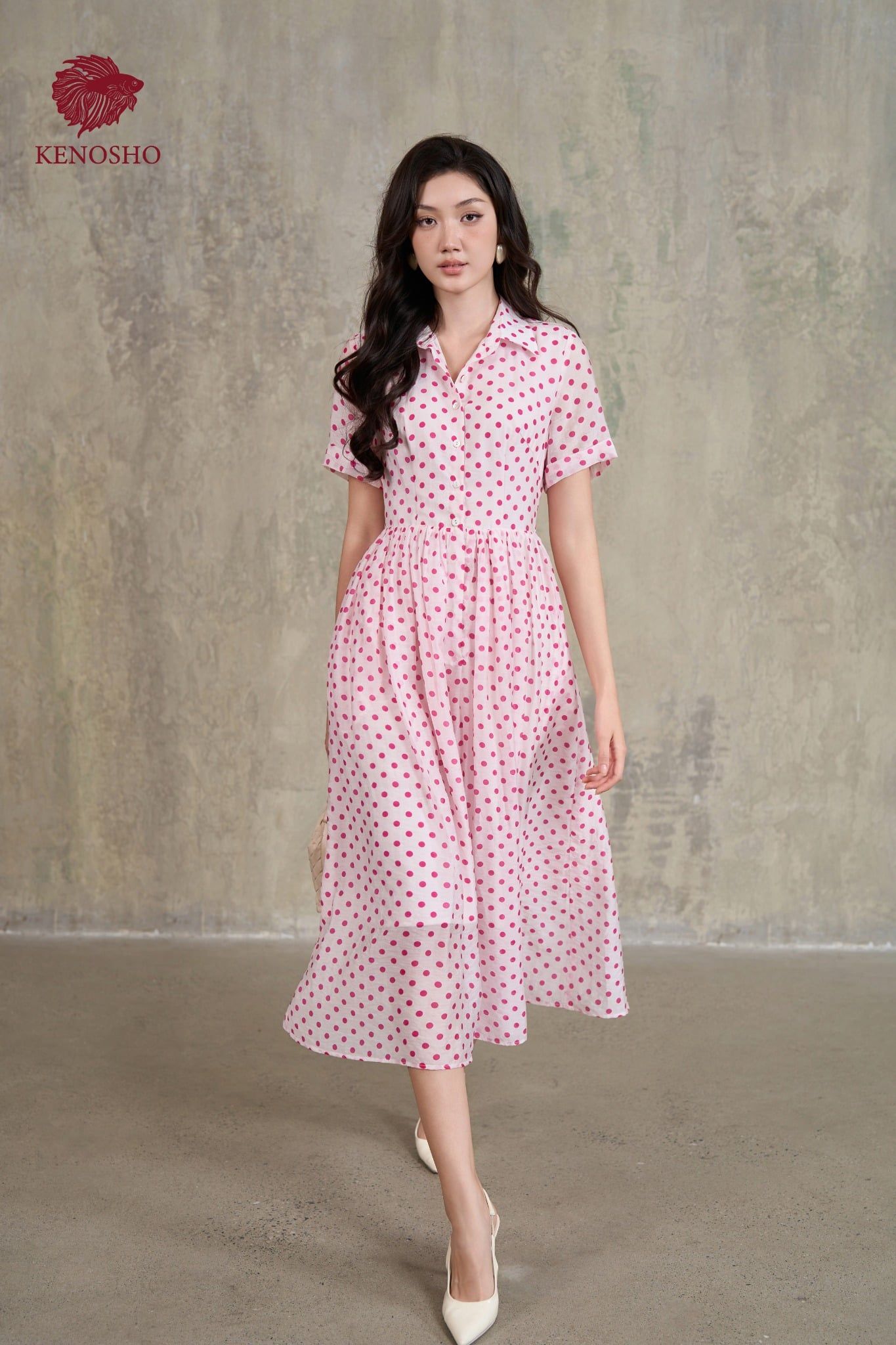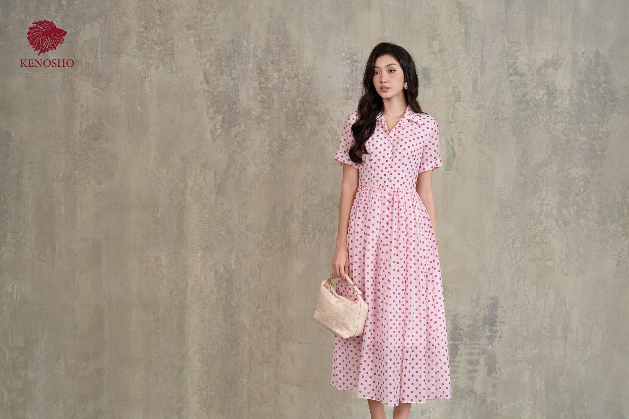 Trong thế giới thời trang xoay vần, có những họa tiết vẫn đứng vững trước thử thách của thời gian, và chấm bi (Polka Dot) chính là một trong số đó. Kết hợp giữa nét cổ điển và tinh thần hiện đại, Đầm tơ chấm bi hồng dáng xòe Kenosho không chỉ là một món đồ thời trang, mà còn là lời tuyên ngôn về sự thanh lịch, dịu dàng và đầy nữ tính của phái đẹp trong những ngày hè rực nắng.