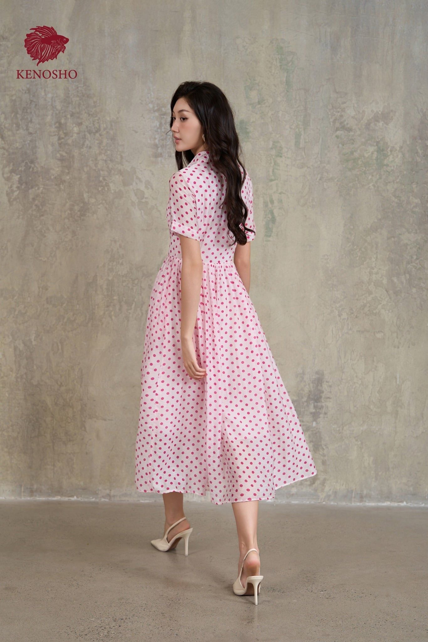 Đầm Tơ Chấm Bi Hồng Dáng Xòe Kenosho: Vẻ Đẹp Thanh Lịch Chẳng Thể Chối Từ